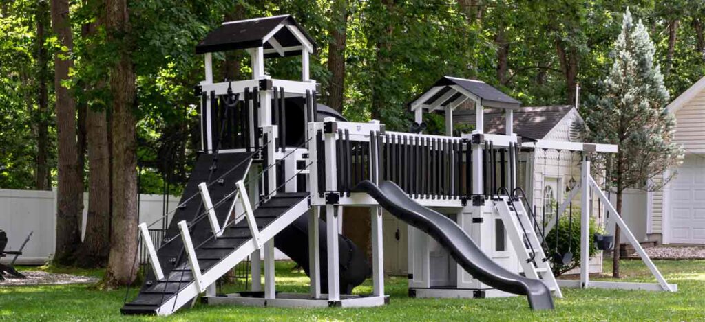 In addition, since we exclusively build the best quality vinyl playsets, you don’t have to do any work to get them looking great or any maintenance to keep them that way. Unlike wooden alternatives, you don’t need to paint or stain our vinyl playsets. Furthermore, our high-quality Amish playgrounds are designed to withstand all types of weather — and still look great. Not only will you love the way your Amish playset looks when you get it home, but you’ll also love how it looks as the years pass. That’s what Amish craftsmanship can do for you. And all our sets are made in the USA, right here in Lancaster County!